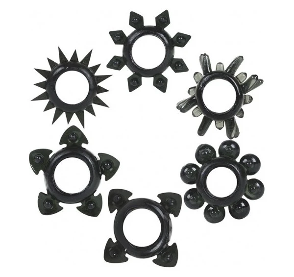 6 jelly cockrings noirs, extensibles fabriqués en TPR sans phtalate.