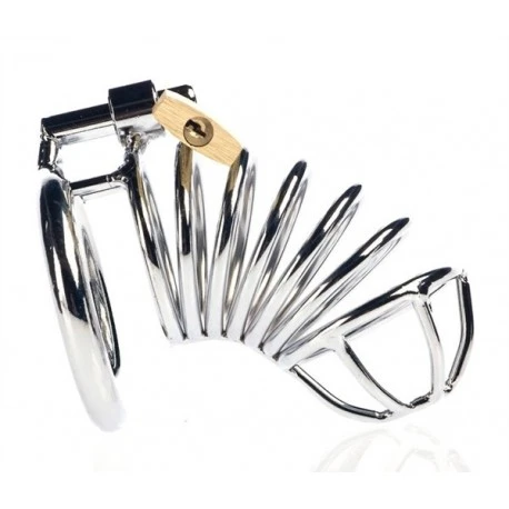 La cage est simple à mettre à l’aide d’un cockring en métal pour encercler les testicules à la base du pénis.