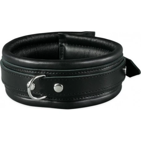 Collier en cuir noir rembourré de 5 cm de largeur.