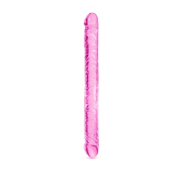 Double dong rose translucide, flexible, fabriqué dans une matière souple et ferme.