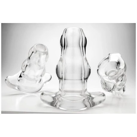 Double Tunnel Plug Transparent disponible en trois tailles : M, L ou XL – Double Tunnel Plug Transparent est percé sur toute sa longueur.