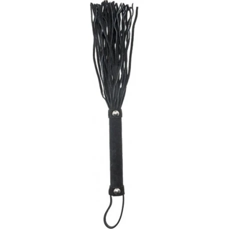 Martinet noir en daim équipé de brins très doux pour les plaisirs SM. Plus on fouette, plus les sensations sont agréablement voluptueuses.