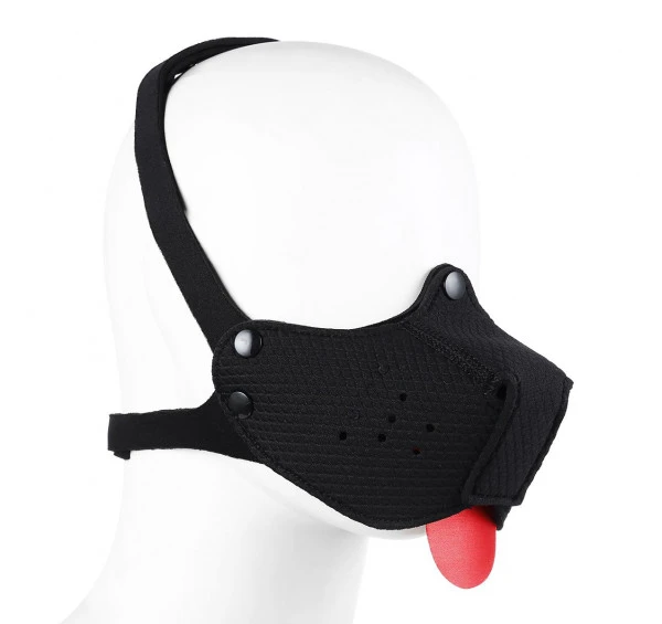 Masque Bouche Puppy Dog en néoprène noir ajustable avec boutons pression.