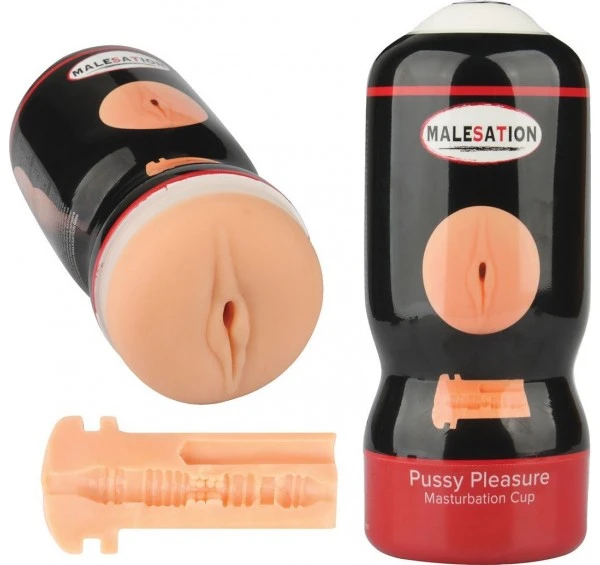 Pussy Pleasure Masturbation Cup prêt à l’emploi, est un masturbateur avec un orifice en forme de vagin.