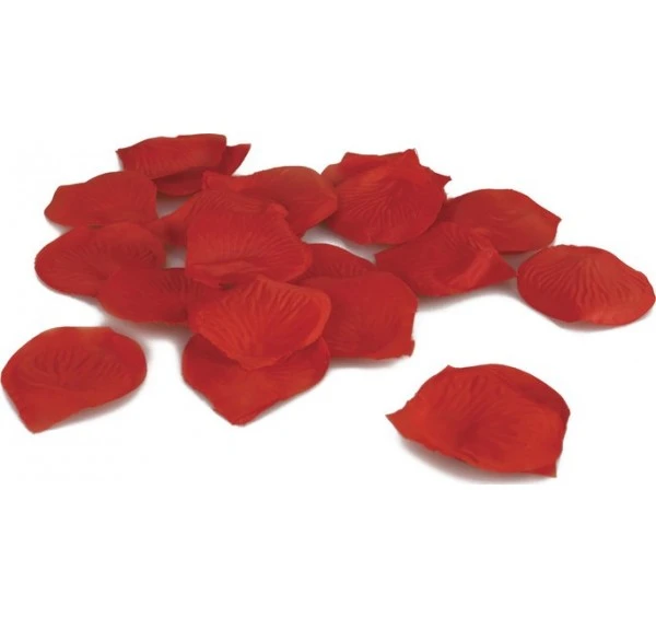 Pétales de rose rouge synthétiques, pour des instants romantiques.