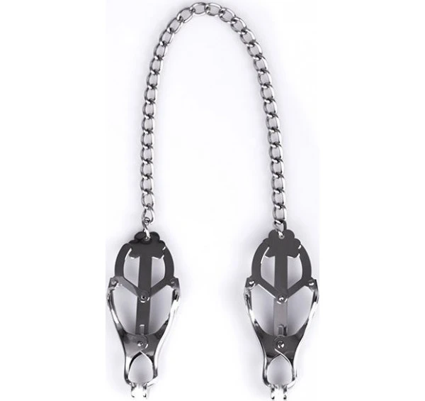 Pinces clips à tétons japonaises en métal reliées par une chaînette.
